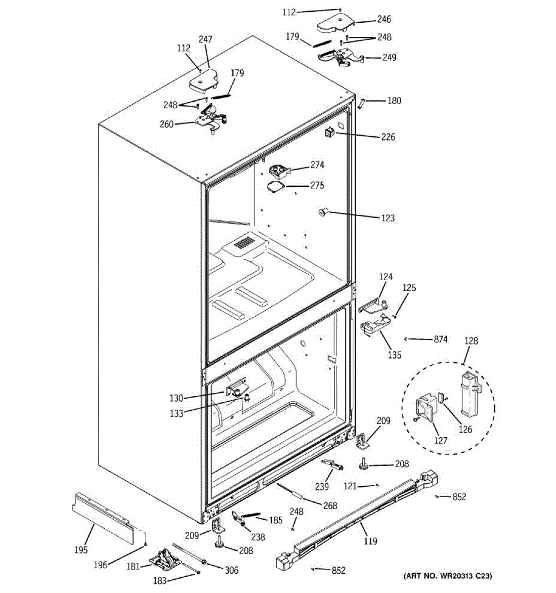 Replace the corner cap cover on your refrigerator. This plastic cover protects and finishes the corner edge. Order a new one if cracked or missing.