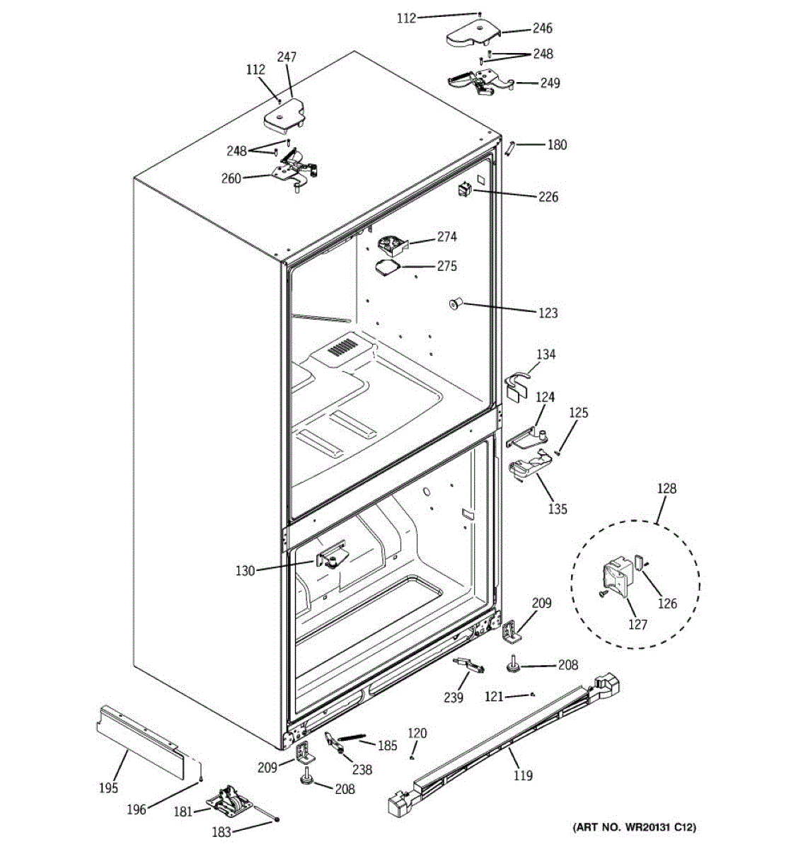 Replace the corner cap cover on your refrigerator. This plastic cover protects and finishes the corner edge. Order a new one if cracked or missing.