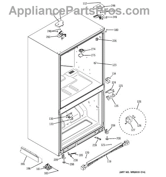 The Door Closure Spring is an OEM replacement part for GE refrigerators. It provides balanced tension to assist the door hinges and latch mechanism in securely closing the refrigerator door. The spring helps the door shut fully while preventing it from slamming closed abruptly.