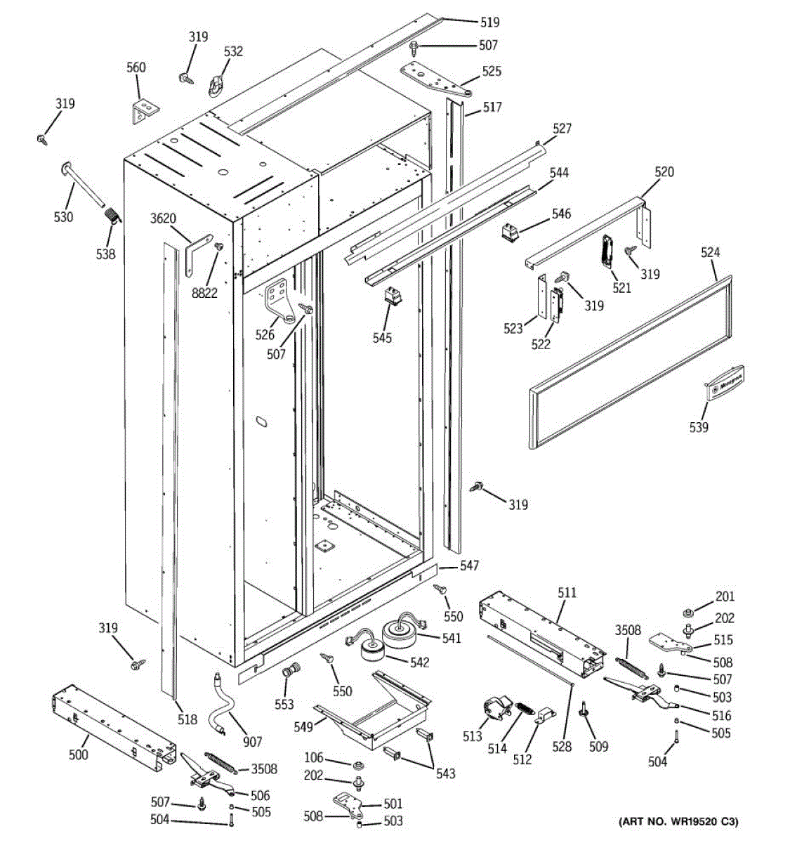Left hand base channel provides lower cabinet support for your freezer. Replace if cracked, bent, or damaged to restore proper alignment and stability.