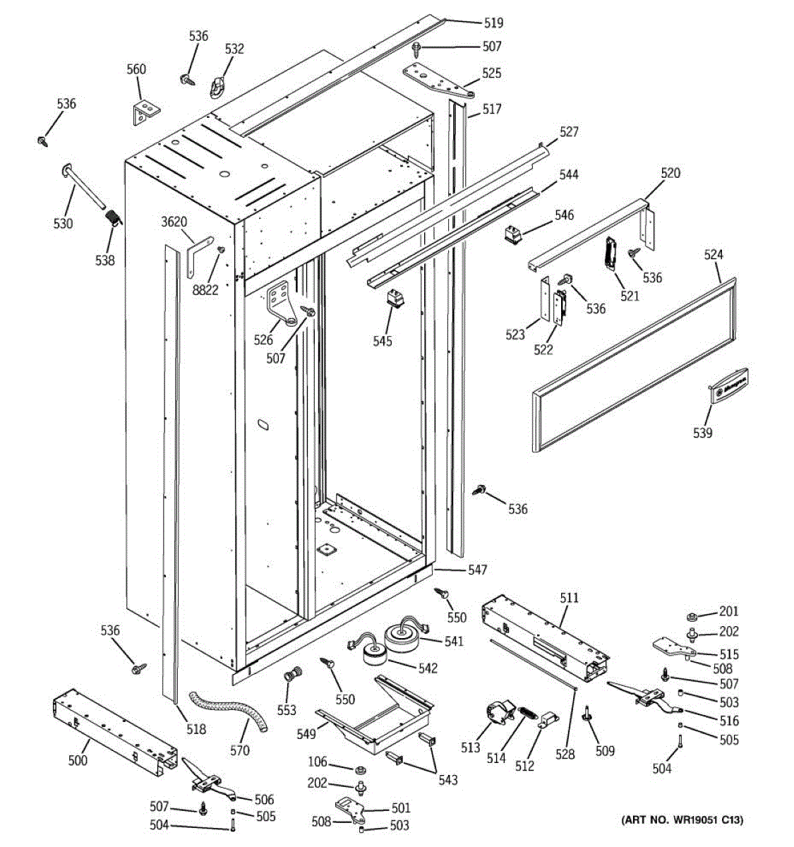 Left hand base channel provides lower cabinet support for your freezer. Replace if cracked, bent, or damaged to restore proper alignment and stability.
