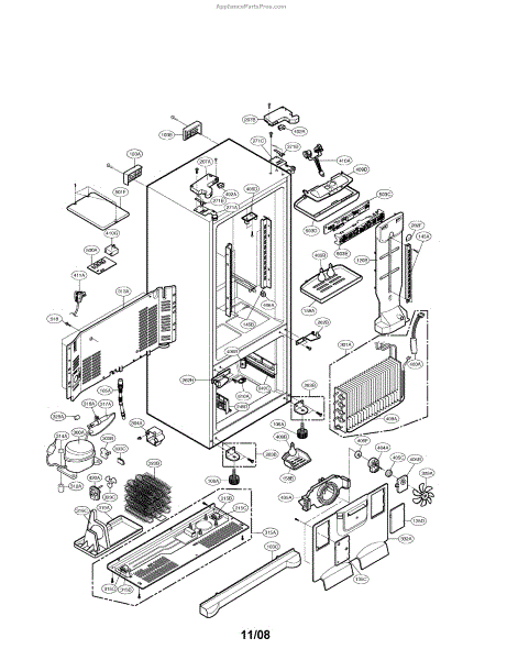 The Capacitor is an OEM replacement part for LG refrigerators. It is an electronic component located next to the refrigerator compressor that stores electric charge between cycles of the power supply circuit. The capacitor plays an important role in providing stable starting power to the compressor motor. Causes of a bad capacitor next to the compressor can include heat distress over thousands of start/stop cycles of the refrigerator. Symptoms of a bad capacitor include:
