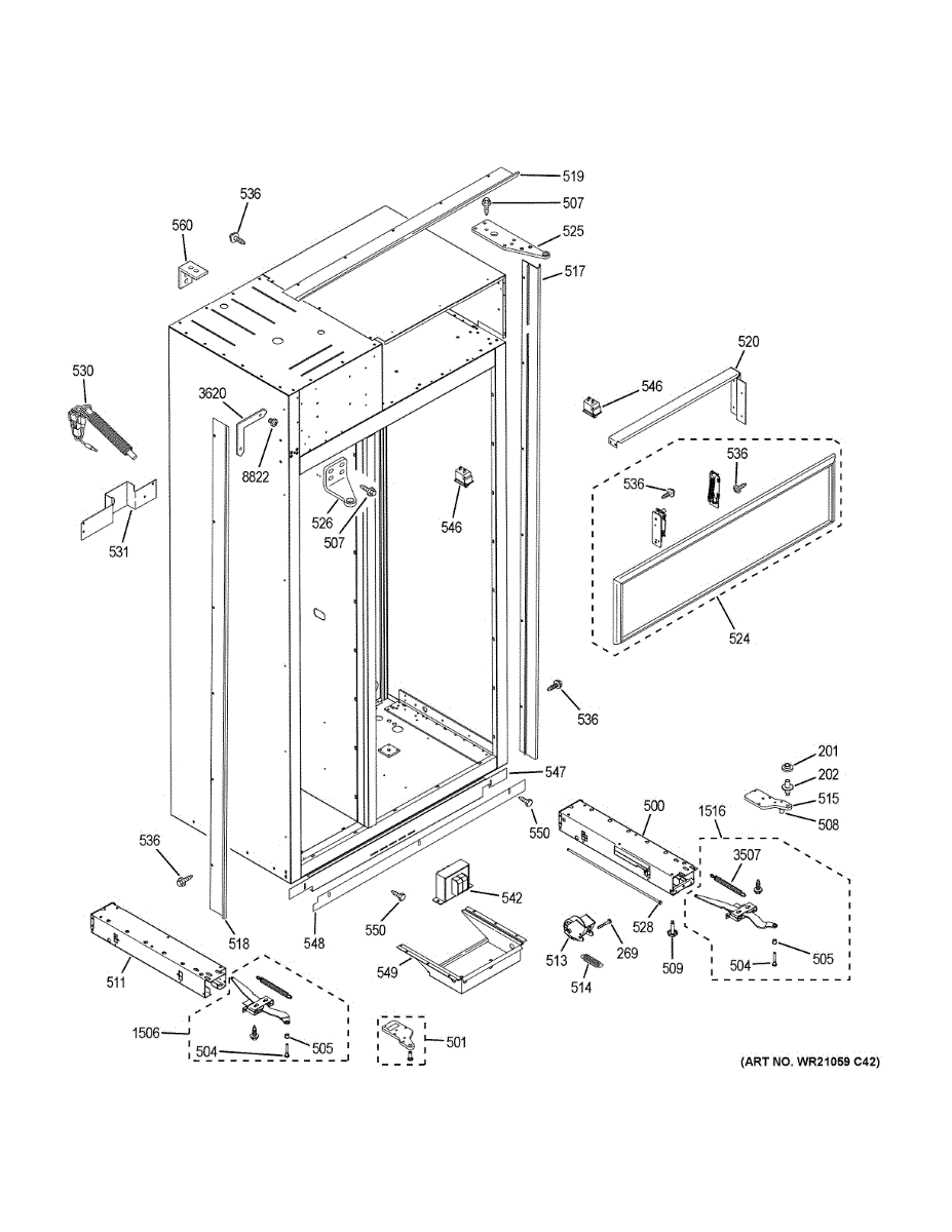 Secures bottom freezer door hinge to cabinet, preventing door sagging and ensuring a tight seal. Replace when freezer door misaligns or won't close properly.