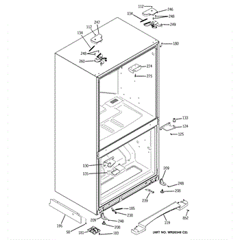 The Door Closure Spring is an OEM replacement part for GE refrigerators. It provides balanced tension to assist the door hinges and latch mechanism in securely closing the refrigerator door. The spring helps the door shut fully while preventing it from slamming closed abruptly.