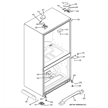 This leveling screw threads into the refrigerator's leveling leg or adjuster bracket to raise or lower the cabinet. Replacing a stripped or missing screw restores stable footing and helps keep doors aligned for proper sealing.