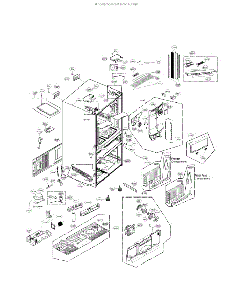 The Compressor is an OEM part for LG refrigerators. As the primary component that circulates refrigerant to chill the refrigerator and freezer compartments, it is crucial for proper cooling operation. The compressor works with the condenser fan and evaporator coil to regulate temperatures inside the refrigerator.