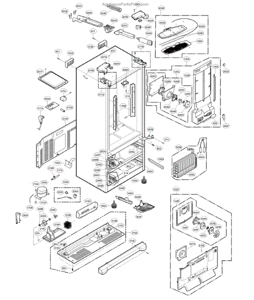 The Compressor is an OEM part for LG refrigerators. As the primary component that circulates refrigerant to chill the refrigerator and freezer compartments, it is crucial for proper cooling operation. The compressor works with the condenser fan and evaporator coil to regulate temperatures inside the refrigerator.