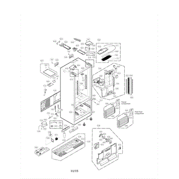 This is an air duct and evaporator cover with fan that is used in refrigerators. This part makes up the back wall of the refrigerator and is used to channel cold air into the refrigerator. It also protects the evaporator. It includes the fan, which circulates cold air throughout the appliance. If any of these parts are damaged, the refrigerator may get too hot or make squealing noises.Before replacing the air duct and evaporator cover with fan, make sure that any food that could go bad while the refrigerator is unplugged has been placed in a cooler or other cold location. Disconnect the refrigerator from power once food has been safely stored. While making the replacement, make sure to wear a pair of work gloves for safety.The air duct and evaporator cover with fan is made to be compatible with a series of refrigerators by LG. It is sold individually and sourced straight from the manufacturer. The component is an authentic OEM replacement part.
