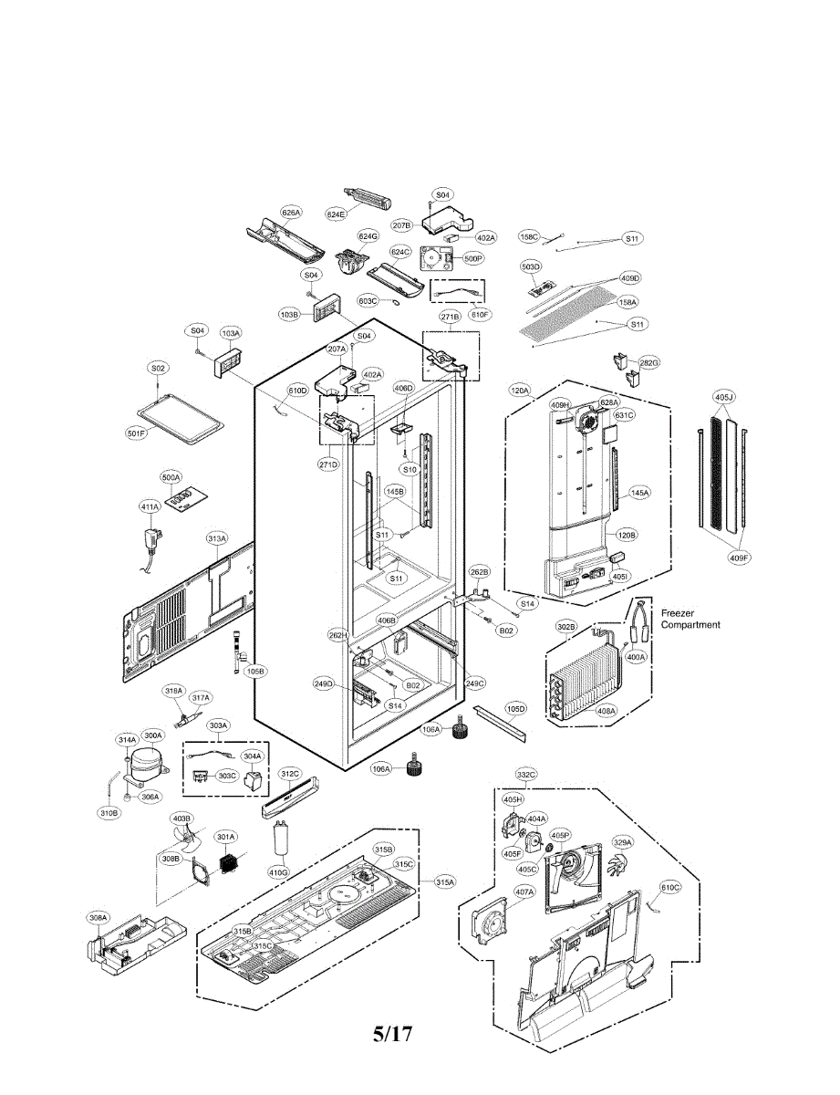 Causes of damage to the Overload Compressor can include power surges, electrical faults within the refrigerator, or a malfunctioning compressor that requires more current than usual to operate.