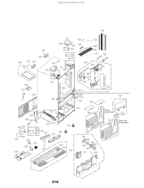 The Compressor is an OEM part for LG refrigerators. As the primary component that circulates refrigerant to chill the refrigerator and freezer compartments, it is crucial for proper cooling operation. The compressor works with the condenser fan and evaporator coil to regulate temperatures inside the refrigerator.