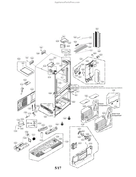 The Compressor is an OEM part for LG refrigerators. As the primary component that circulates refrigerant to chill the refrigerator and freezer compartments, it is crucial for proper cooling operation. The compressor works with the condenser fan and evaporator coil to regulate temperatures inside the refrigerator.