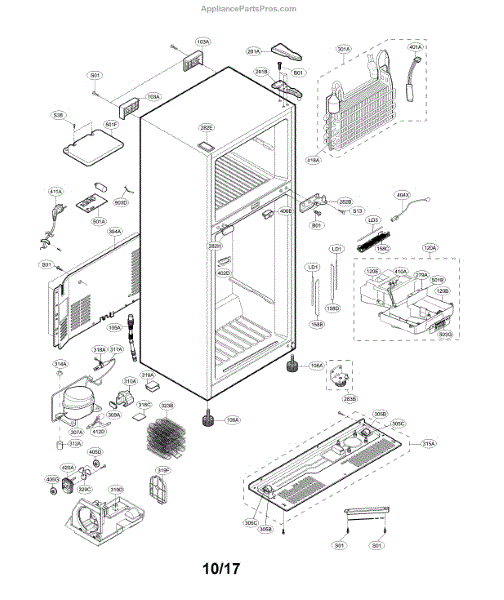 This fan assembly circulates air through the appliance so coils and internal components operate at the proper temperature. Replacing a failed or noisy fan can restore airflow and help prevent performance issues caused by weak circulation.