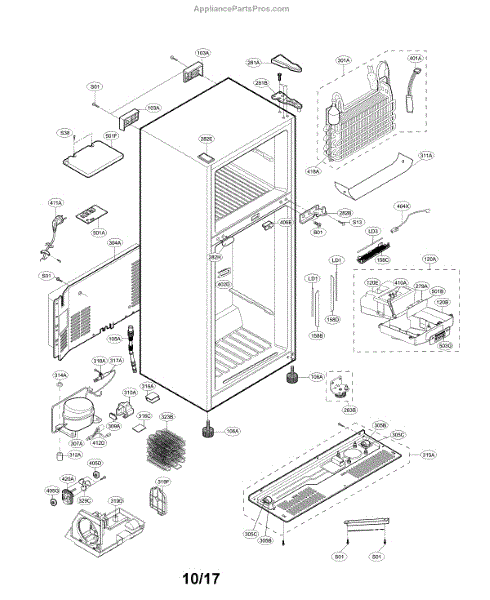 This fan assembly circulates air through the appliance so coils and internal components operate at the proper temperature. Replacing a failed or noisy fan can restore airflow and help prevent performance issues caused by weak circulation.
