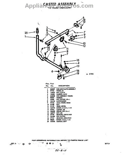Parts for Whirlpool LXB4100W1: 05 - Caster Parts