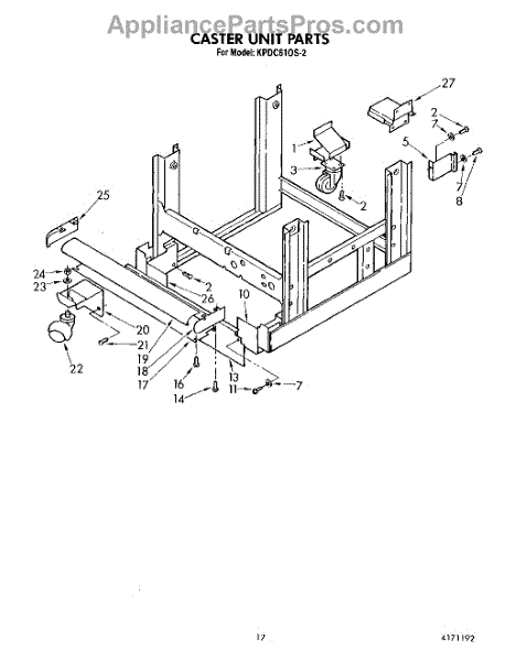 Parts for Kitchenaid KPDC610S2: 13 - Caster Unit Parts