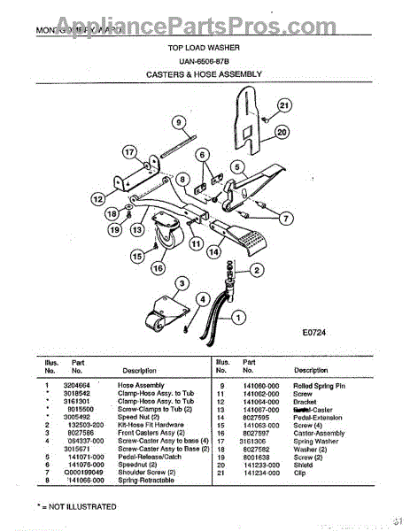 Parts for Frigidaire 6506B: Casters And Hose Assembly Parts