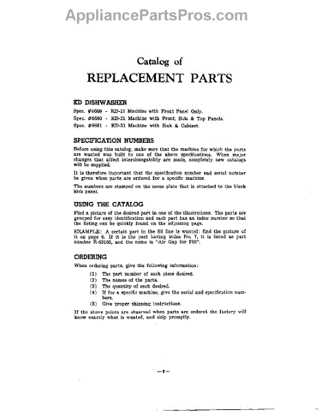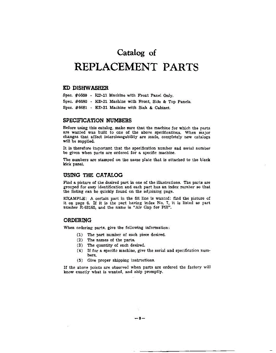 Parts for Kitchenaid KD11: 02 - Catalog Of Replacement Parts, Kd Di Parts