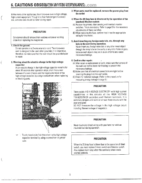 Parts for Samsung MC6566W/XAA: Cautions While Servicing Parts