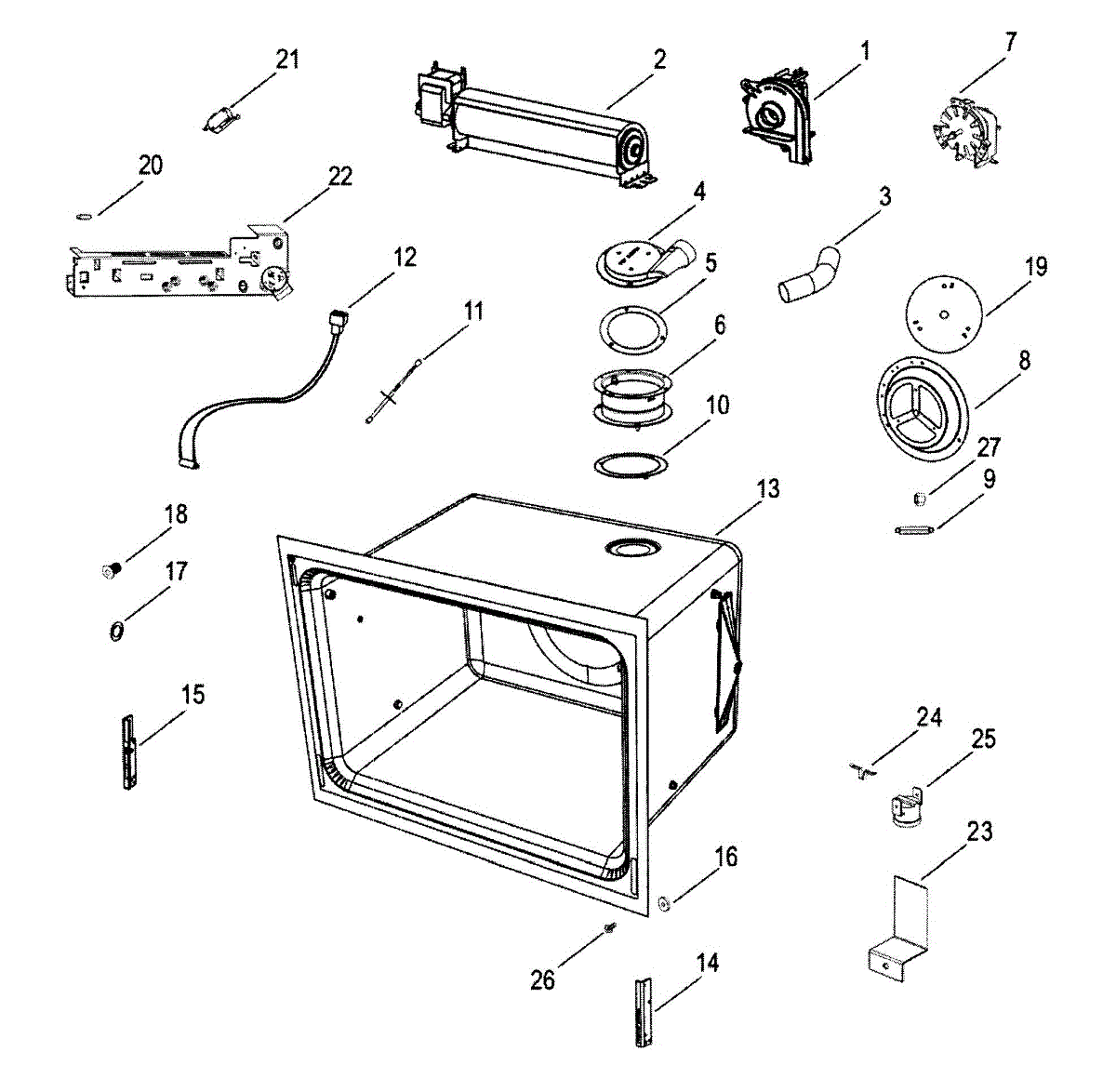 Internal cooling fan assembly for electric wall ovens. Replaces cracked, broken, or worn fan components. Includes mounting hardware for installation.