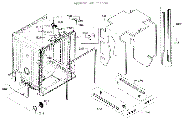 The Side Trim Strip is an OEM replacement part for Bosch dishwashers. It serves as an aesthetic finishing piece that lines both sides of the dishwasher interior tub. Causes of failure include normal wear from daily use, minor impacts during loading/unloading, and breakdown of plastic material over extended years. Symptoms of a worn side trim strip can include: