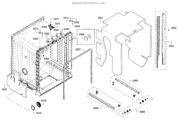 The Side Trim Strip is an OEM replacement part for Bosch dishwashers. It serves as an aesthetic finishing piece that lines both sides of the dishwasher interior tub. Causes of failure include normal wear from daily use, minor impacts during loading/unloading, and breakdown of plastic material over extended years. Symptoms of a worn side trim strip can include: