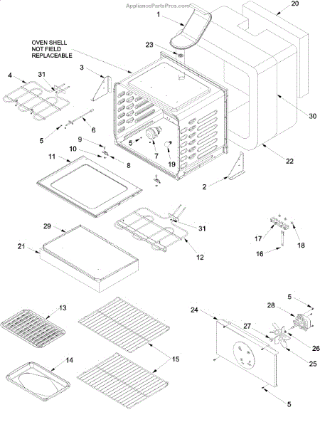 This terminal block is the insulated connection point where the appliance's incoming power ties into the internal wiring. Replacing a heat-damaged or loose block restores a safe, reliable electrical path and helps prevent arcing and intermittent power loss.