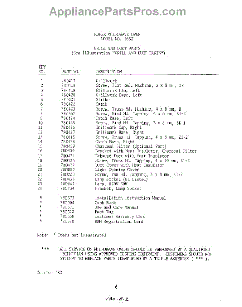 Parts for Whirlpool 2652000: 07 - Cavity Parts