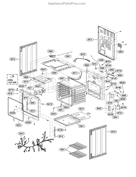 This single wiring harness connects appliance components to deliver power and signals, restoring reliable electrical continuity and component communication. Use when a damaged or corroded harness causes intermittent operation or complete failure of the connected part. What it does: