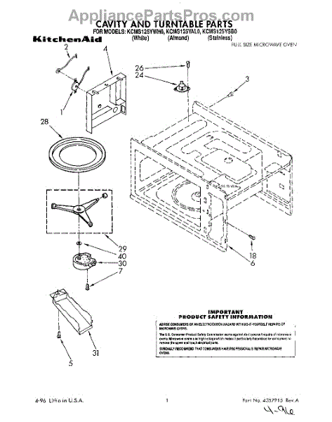 This factory screw secures appliance components to their mounting points. Replace missing, worn, or stripped hardware to restore a tight fit, proper alignment, and quieter operation across the affected assembly.