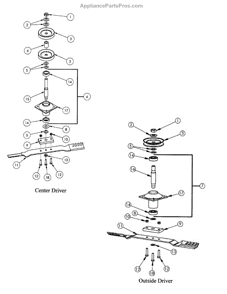 Parts for Swisher ZT2766: Center & Outside Drivers Parts
