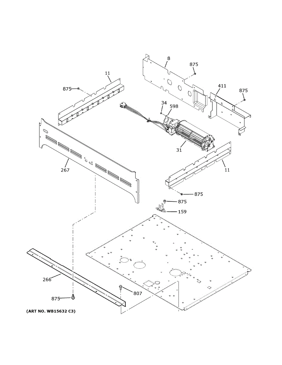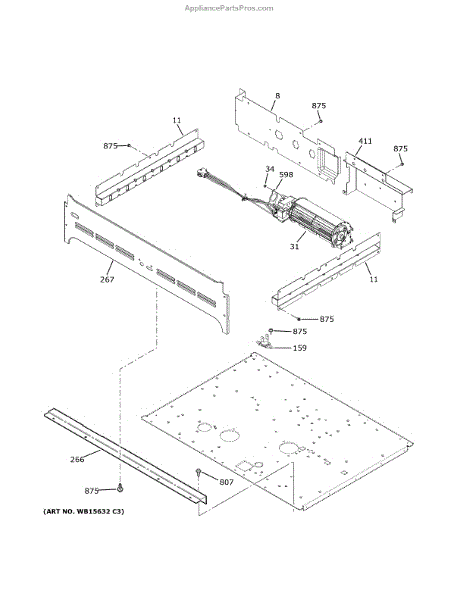 The Cooling Fan Lower is an OEM part for GE wall ovens. It circulates air through the oven, which helps maintain an even cooking temperature inside the oven cavity.