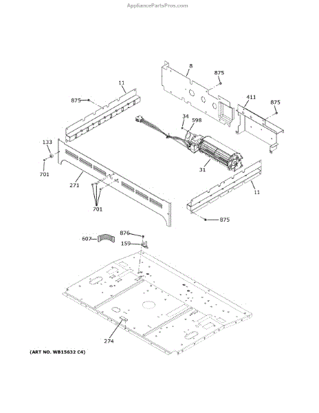 The Cooling Fan Lower is an OEM part for GE wall ovens. It circulates air through the oven, which helps maintain an even cooking temperature inside the oven cavity.