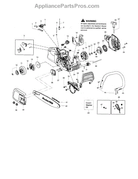This clutch washer kid includes a clutch, a washer, and a clip. A washer helps to protect the engine from unwanted pressure at the joint where two parts connect. Washers help to spread the pressure evenly so that the fastener doesn’t move, which would cause corrosion and friction. Washers can wear down or corrode over time, leading to unwanted pressure in the chainsaw’s engine. Based on the location of this washer, replacing it may require different steps to take apart the engine. Be sure that the engine has cooled completely before attempting any repairs. This part is compatible with Poulan and Craftsman chainsaws and is a genuine OEM part sourced directly from the manufacturer.