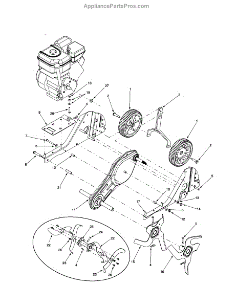 This left-hand inner tines assembly sit next to the outer tines on the left side of tillers from a variety of major manufacturers. The tines are the part of the equipment that breaks up the soil to create a garden and allow cultivation. The part is made of strong metal, but over time it can start to wear down or break when running over large rocks or other items.If the tines are broken or have been worn down, they will need to be replaced. Tines that are worn will not dig into the earth as well as new tines. A hammer and a set of pliers are required to make the replacement. Remove the tines from the tiller after turning it off and taking out the spark plug wire. The new tines can be installed in the same place.These inner tines are made to be used with tillers created by MasterCut, Yard-Man, Bolens, Montgomery Wards, Huskee, MTD, Yard Machines, Cub Cadet, and Craftsman. It is sold as an individual part. This is a genuine OEM replacement part that is sourced directly from the manufacturer.