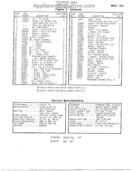 Parts for Mcculloch 24144: Chain Saw / Service Specs Page 2 Parts