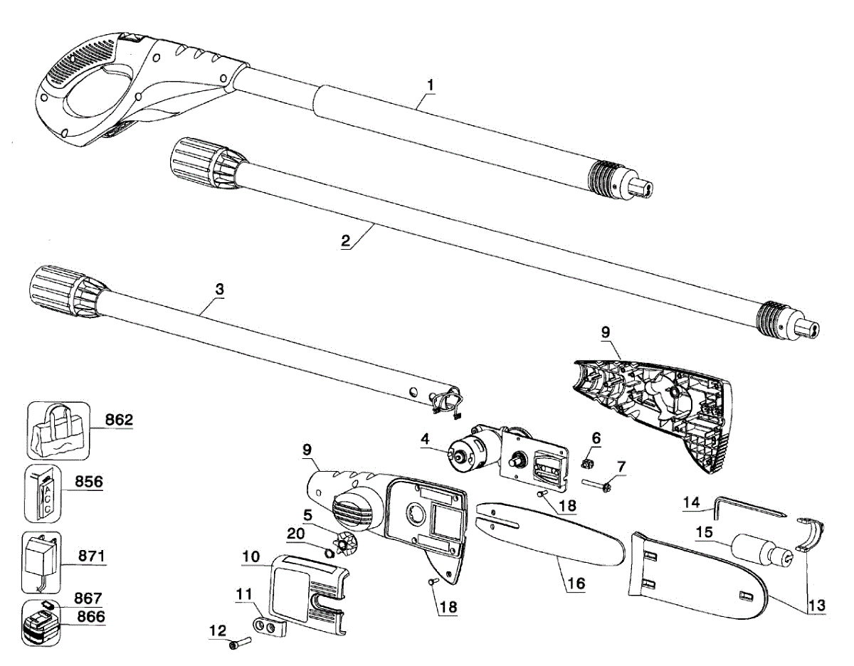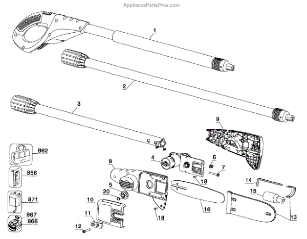 Parts for Black & Decker NPP2018 TYPE 2: Chainsaw Assy Parts