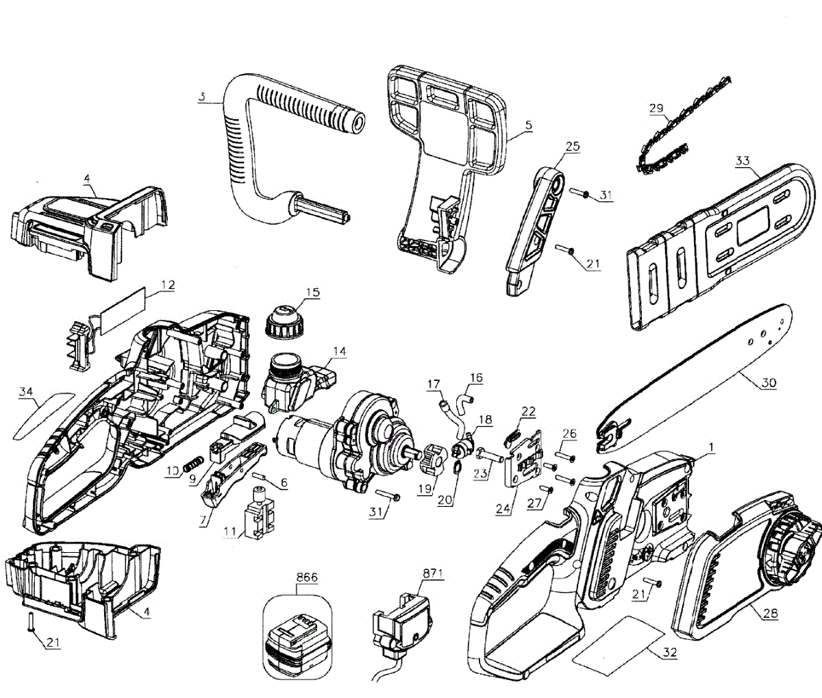 Parts for Black & Decker LCS1020 TYPE 1: Chainsaw Parts