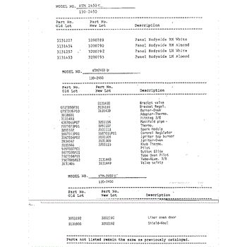 Parts for Frigidaire 2450A: Changed Parts