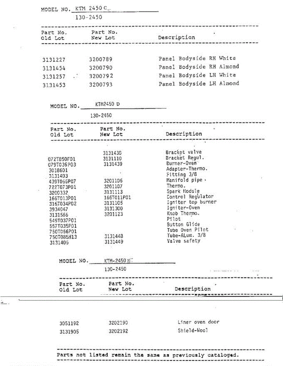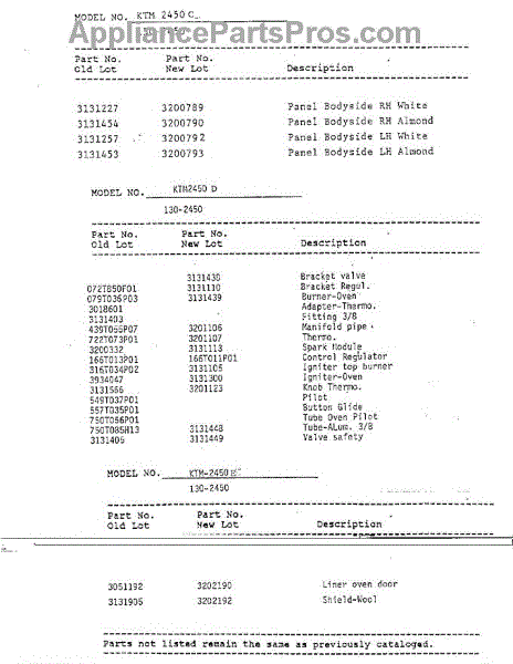 Parts for Frigidaire 2450E: Changed Parts