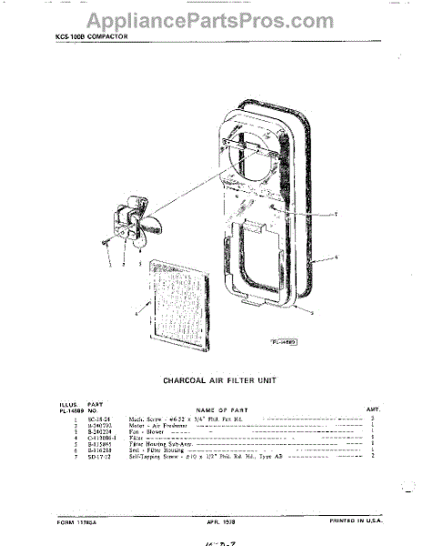 Parts for Kitchenaid KCS100B: 15 - Charcoal Air Filter Parts