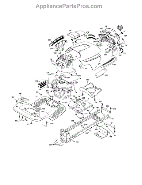 Complete dashboard assembly for riding mower tractors. Replaces cracked, broken, or damaged dash panels. Includes mounting points for gauges and controls.