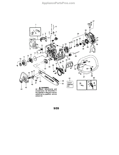 This clutch washer kid includes a clutch, a washer, and a clip. A washer helps to protect the engine from unwanted pressure at the joint where two parts connect. Washers help to spread the pressure evenly so that the fastener doesn’t move, which would cause corrosion and friction. Washers can wear down or corrode over time, leading to unwanted pressure in the chainsaw’s engine. Based on the location of this washer, replacing it may require different steps to take apart the engine. Be sure that the engine has cooled completely before attempting any repairs. This part is compatible with Poulan and Craftsman chainsaws and is a genuine OEM part sourced directly from the manufacturer.