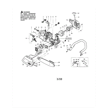 Sometimes known as a chain tensioner, this kit is used to adjust the bar of a chainsaw, pruner, or pole saw to increase or decrease the amount of tension in the chain. Having an overly tense chain can cause friction with the bar, which could lead to an engine fire. A chain that is too loose has a chance of kicking back or even losing the chain mid-use, which would be incredibly dangerous. Chains naturally become looser over time, so be sure to regularly check the status of the chain. Having the right amount of tension is critical for the saw to work properly. Making adjustments is easy with our genuine OEM bar adjustment kit sourced straight from the manufacturer. Simply remove the clutch cover and find the adjustment assembly in the cover. Remove it and thread the new chain tensioner onto the assembly. Reassemble the clutch cover and be sure to line up all the corresponding parts. Compatible with Craftsman, Husqvarna, Poulan, and Poulan Pro. This part is shipped individually and only a screwdriver is needed to make this repair.
