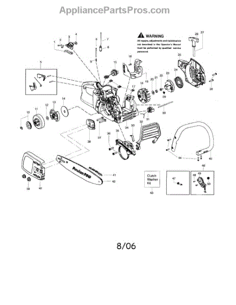 This clutch washer kid includes a clutch, a washer, and a clip. A washer helps to protect the engine from unwanted pressure at the joint where two parts connect. Washers help to spread the pressure evenly so that the fastener doesn’t move, which would cause corrosion and friction. Washers can wear down or corrode over time, leading to unwanted pressure in the chainsaw’s engine. Based on the location of this washer, replacing it may require different steps to take apart the engine. Be sure that the engine has cooled completely before attempting any repairs. This part is compatible with Poulan and Craftsman chainsaws and is a genuine OEM part sourced directly from the manufacturer.
