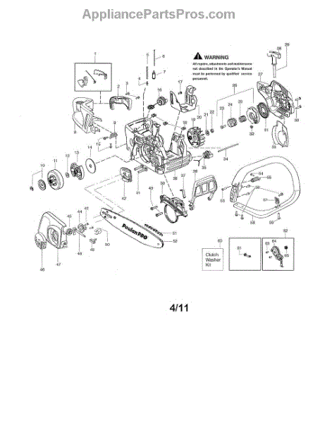 This clutch washer kid includes a clutch, a washer, and a clip. A washer helps to protect the engine from unwanted pressure at the joint where two parts connect. Washers help to spread the pressure evenly so that the fastener doesn’t move, which would cause corrosion and friction. Washers can wear down or corrode over time, leading to unwanted pressure in the chainsaw’s engine. Based on the location of this washer, replacing it may require different steps to take apart the engine. Be sure that the engine has cooled completely before attempting any repairs. This part is compatible with Poulan and Craftsman chainsaws and is a genuine OEM part sourced directly from the manufacturer.