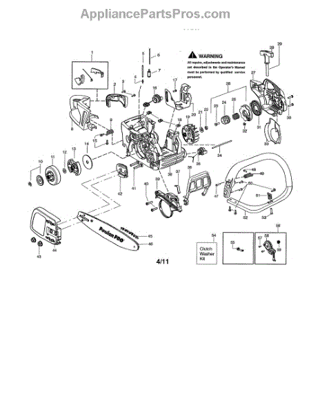 This clutch washer kid includes a clutch, a washer, and a clip. A washer helps to protect the engine from unwanted pressure at the joint where two parts connect. Washers help to spread the pressure evenly so that the fastener doesn’t move, which would cause corrosion and friction. Washers can wear down or corrode over time, leading to unwanted pressure in the chainsaw’s engine. Based on the location of this washer, replacing it may require different steps to take apart the engine. Be sure that the engine has cooled completely before attempting any repairs. This part is compatible with Poulan and Craftsman chainsaws and is a genuine OEM part sourced directly from the manufacturer.