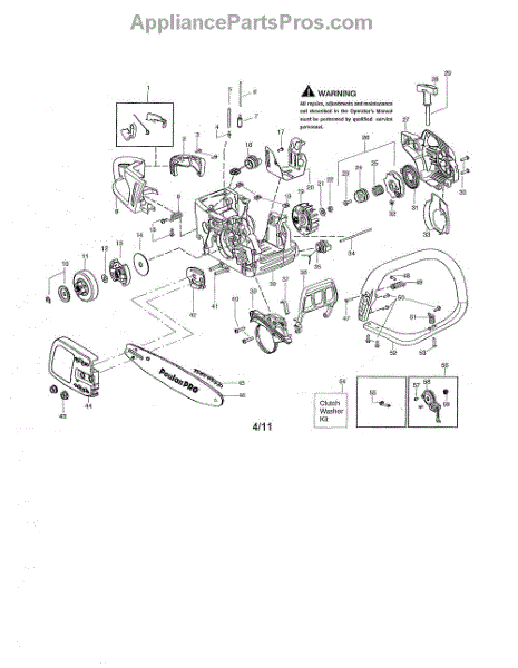 This clutch washer kid includes a clutch, a washer, and a clip. A washer helps to protect the engine from unwanted pressure at the joint where two parts connect. Washers help to spread the pressure evenly so that the fastener doesn’t move, which would cause corrosion and friction. Washers can wear down or corrode over time, leading to unwanted pressure in the chainsaw’s engine. Based on the location of this washer, replacing it may require different steps to take apart the engine. Be sure that the engine has cooled completely before attempting any repairs. This part is compatible with Poulan and Craftsman chainsaws and is a genuine OEM part sourced directly from the manufacturer.