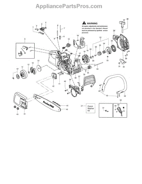 This clutch washer kid includes a clutch, a washer, and a clip. A washer helps to protect the engine from unwanted pressure at the joint where two parts connect. Washers help to spread the pressure evenly so that the fastener doesn’t move, which would cause corrosion and friction. Washers can wear down or corrode over time, leading to unwanted pressure in the chainsaw’s engine. Based on the location of this washer, replacing it may require different steps to take apart the engine. Be sure that the engine has cooled completely before attempting any repairs. This part is compatible with Poulan and Craftsman chainsaws and is a genuine OEM part sourced directly from the manufacturer.