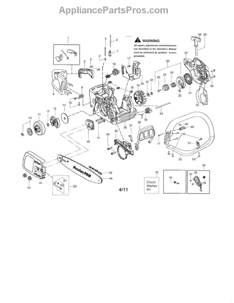 This clutch washer kid includes a clutch, a washer, and a clip. A washer helps to protect the engine from unwanted pressure at the joint where two parts connect. Washers help to spread the pressure evenly so that the fastener doesn’t move, which would cause corrosion and friction. Washers can wear down or corrode over time, leading to unwanted pressure in the chainsaw’s engine. Based on the location of this washer, replacing it may require different steps to take apart the engine. Be sure that the engine has cooled completely before attempting any repairs. This part is compatible with Poulan and Craftsman chainsaws and is a genuine OEM part sourced directly from the manufacturer.