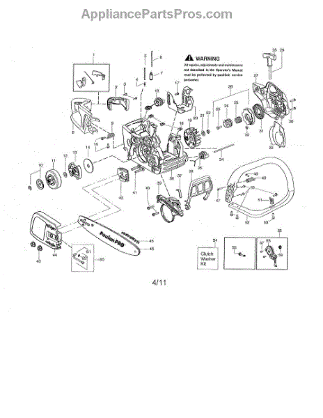 This clutch washer kid includes a clutch, a washer, and a clip. A washer helps to protect the engine from unwanted pressure at the joint where two parts connect. Washers help to spread the pressure evenly so that the fastener doesn’t move, which would cause corrosion and friction. Washers can wear down or corrode over time, leading to unwanted pressure in the chainsaw’s engine. Based on the location of this washer, replacing it may require different steps to take apart the engine. Be sure that the engine has cooled completely before attempting any repairs. This part is compatible with Poulan and Craftsman chainsaws and is a genuine OEM part sourced directly from the manufacturer.